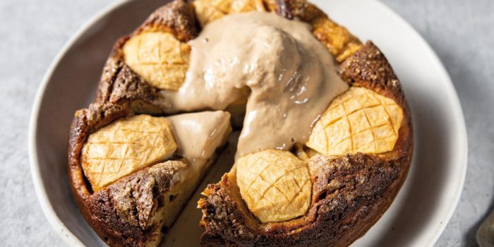 Ζεστή και κρύα μηλόπιτα με παγωτό καφέ