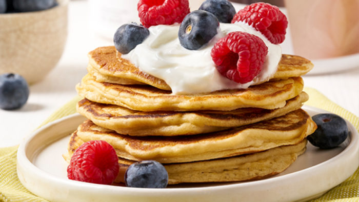 Pancakes πρωτεΐνης με Cookie Crunch και φυστικοβούτυρο